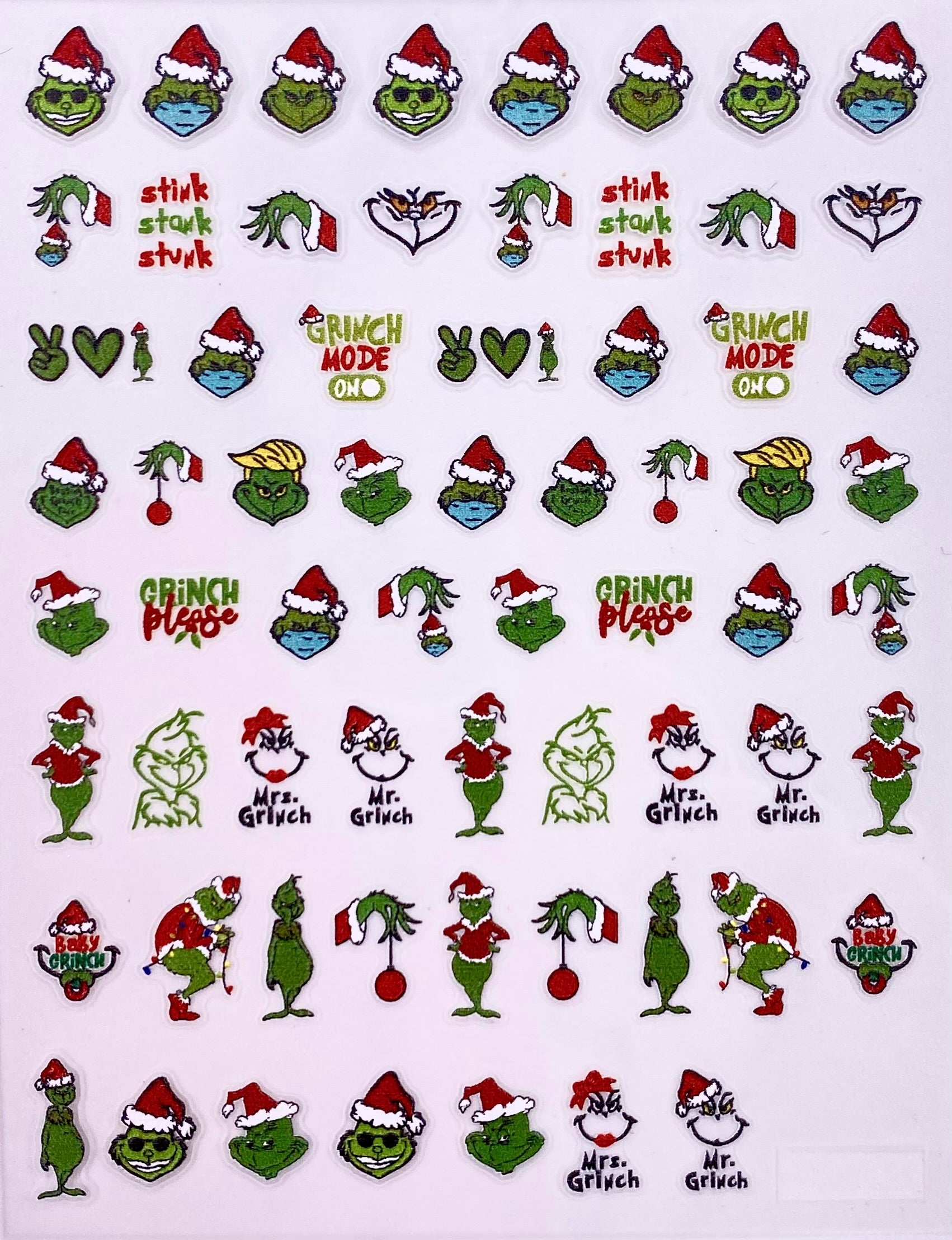 Grinch Nail Stickers is backordered and will ship as soon as it is back in stock.